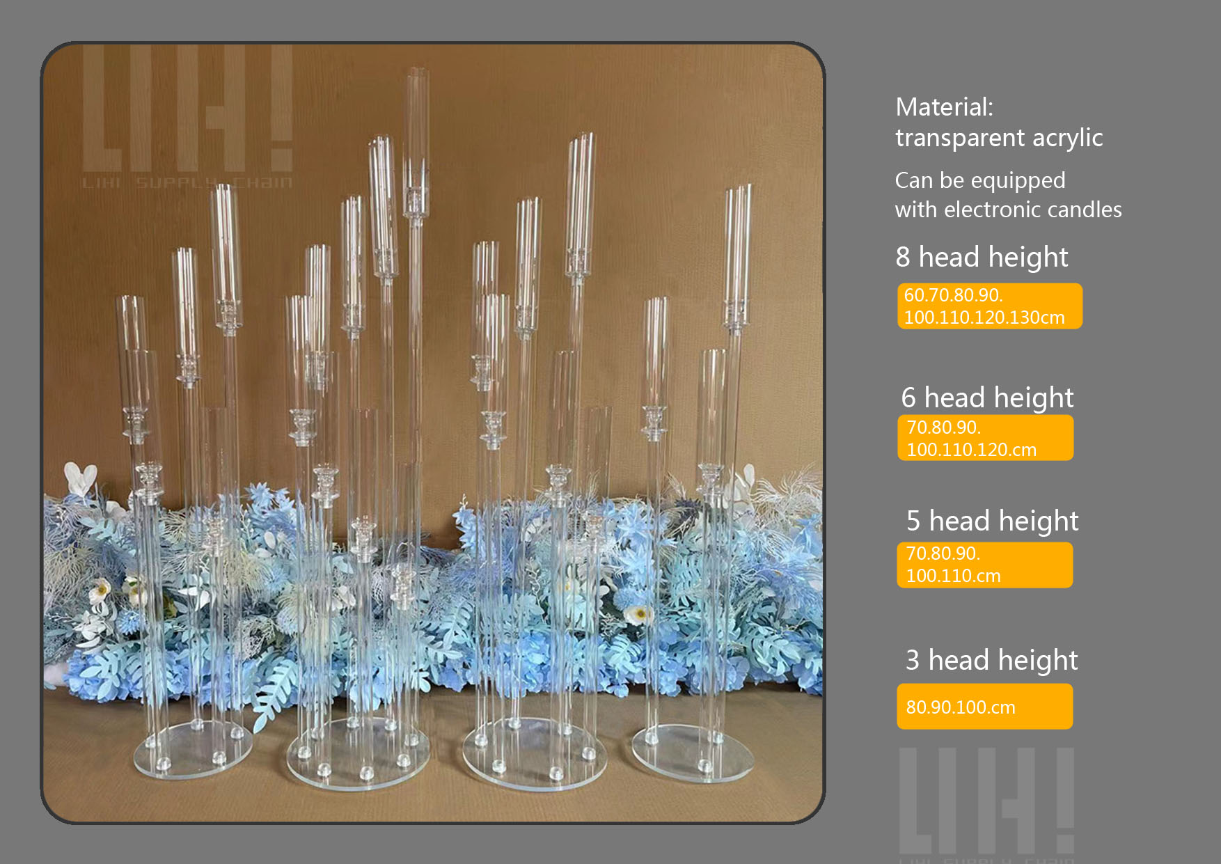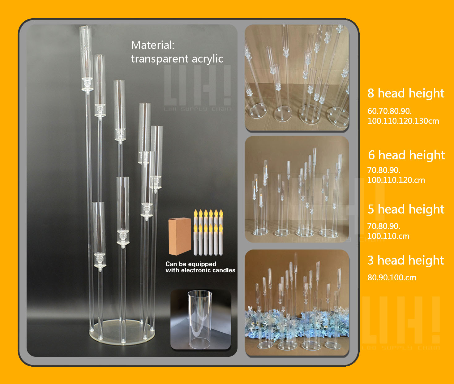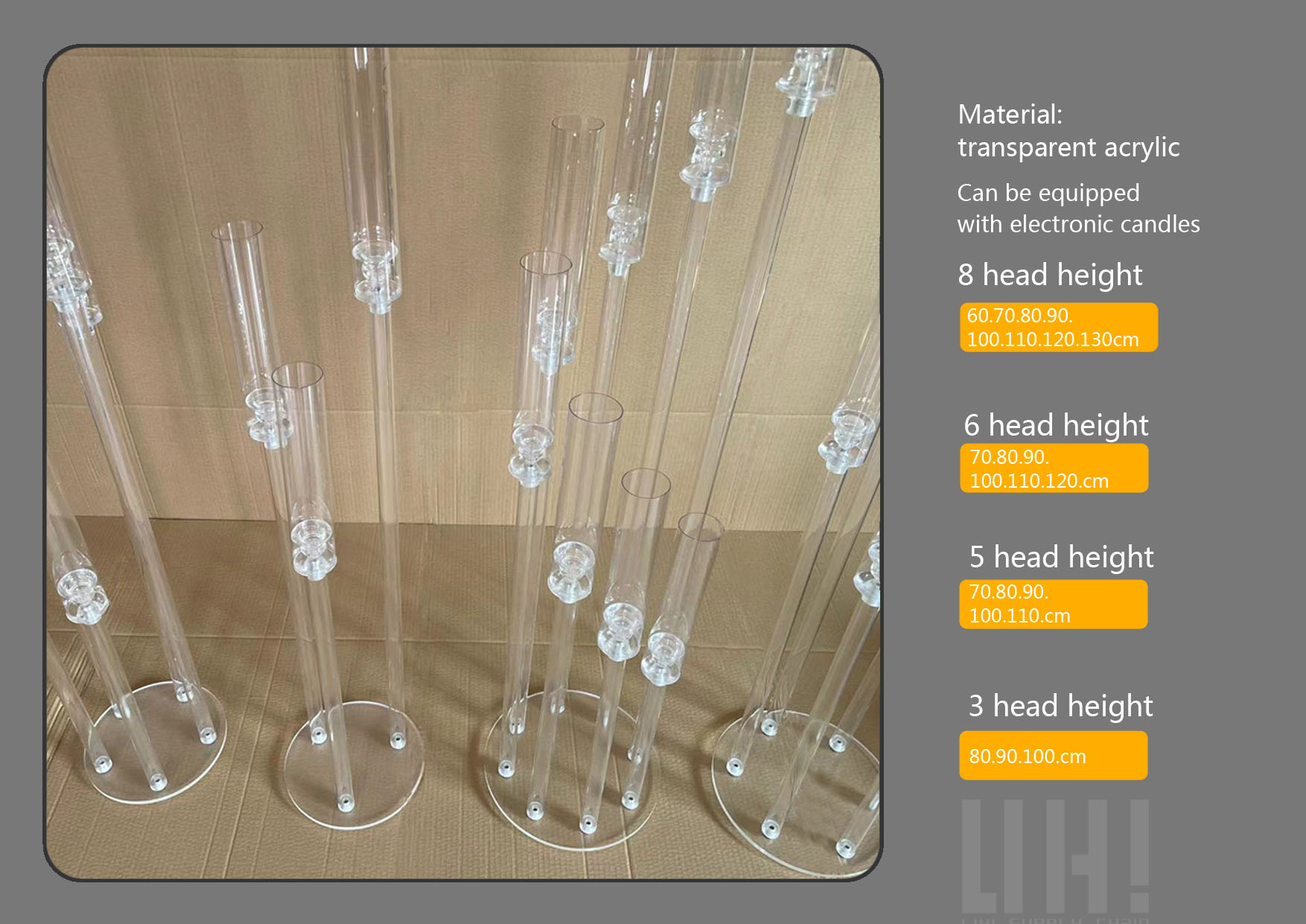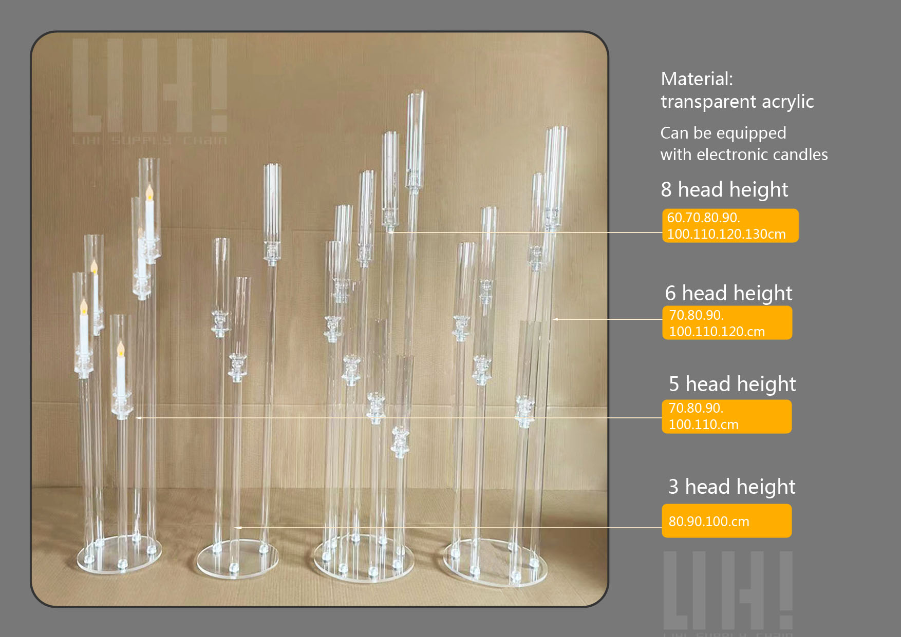 8 Arm Decorative Candle Holder Clear Crystal Tapered High Post Wedding Centerpiece Acrylic Candle Holder For Wedding Table