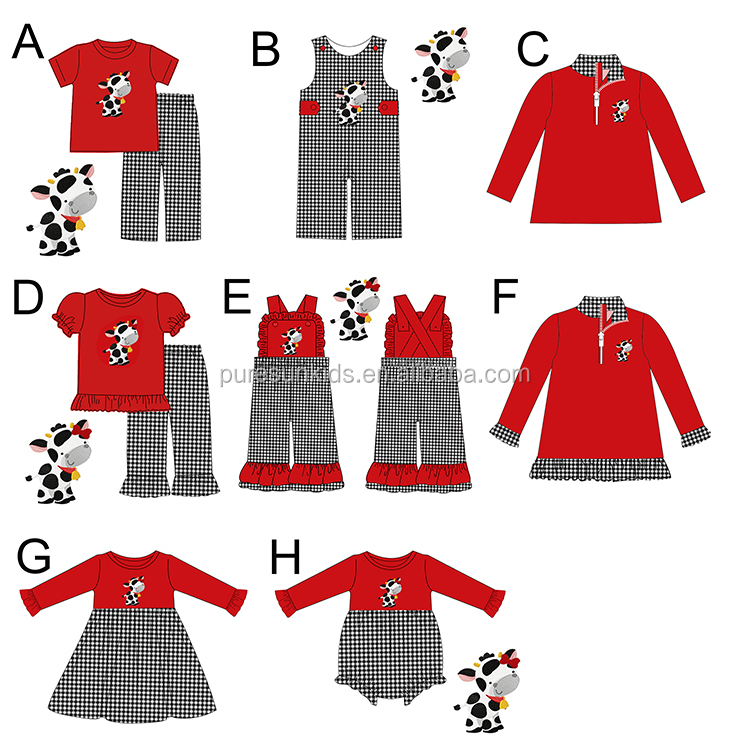 High Quality Farm Cow Applique Cotton Plaid Kids Jumpsuit Girls Jumpsuit
