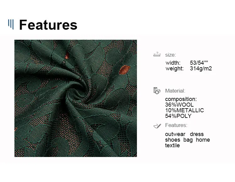 | Weight: | 372gsm; | Keyword: | wool jacquard fabric; |
