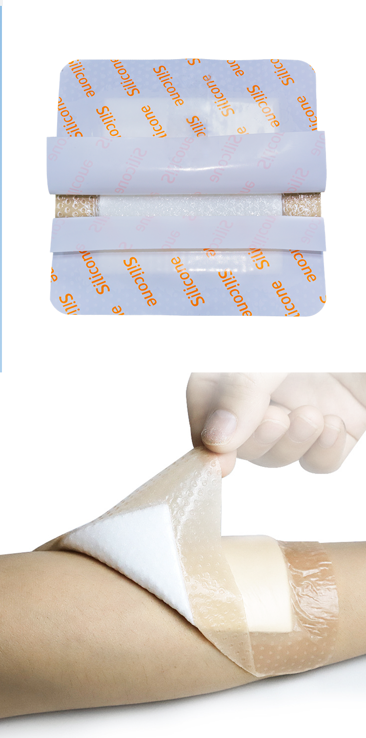 | Foam dressings with silicone borders are suitable for a variety of moderately to highly exuding wounds, especially in difficult-to-dress areas such as 1. Pressure sores 2. Venous leg ulcers 3. Diabetic foot ulcer 4. First and second degree burns 5. Skin grafts and donor sites 6. Postoperative and traumatic |