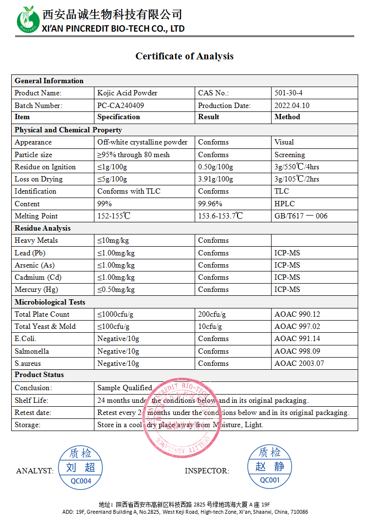 Pincredit supplies cosmetic grade kojic acid powder and kojic acid dipalmitate powder, contact us for a free sample.