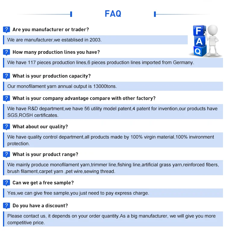 | Evenness: | uniform diameter; | Type: | 100% Nylon66 resin; |