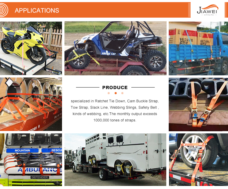 2. Our main products are ratchet ties, buckle straps, trailer straps, slack ropes, slings, safety belts, all kinds of webbing and so on.