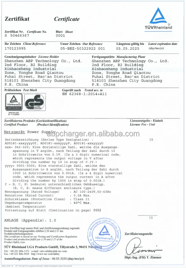 Founded in 2007, Shenzhen ABP Technology is specialized in charging solutions across all categories.,such as switching power adapters,LSA/ Lithium Ni-mh battery chargers,phone chargers.,etc.We currently have 200-300 employees include 10-20 R&D team,20-30 QC team ,with a 6,000 square meters' plant,1 million capacity per month, which is equipped with advanced and complete production test equipment. Our factory have passed ISO9001-2015 audit and our products are certificated with CE, GS, FCC, UL, CUL,PSE, SAA, C-TICK,RCM, PSE,KC, CCC,ROHS .,etc.