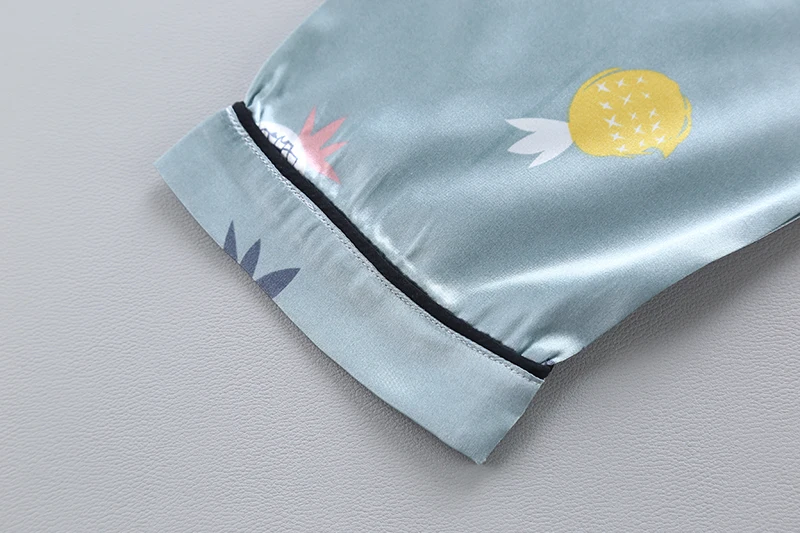 2021 Fall new Fashion cute print long sleeve silk satin sleepwear children's two piece sets boys girls cartoon kids pajamas