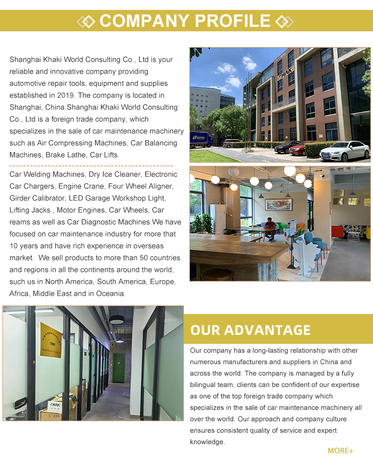 A: Khaki specializes in selling auto maintenance machinery, such as air compressors, auto balancing machines, brake lathes, auto lifts, auto welding machines, dry ice blasting machines, electronic car chargers, engine cranes, four-wheel aligners, and girder calibration instruments , LED garage workshop lights, jacks, engines, wheels, car hinges and car diagnostic machines.