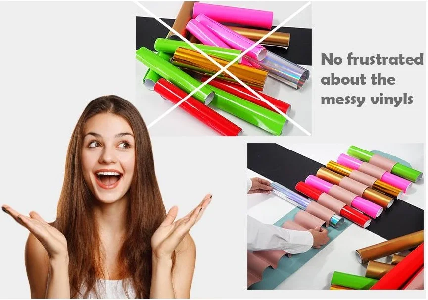 BEST WAY TO STORE VINYL ROLLS- This large capacity vinyl organizer can hold 17-22 rolls of vinyl with a diameter of less than 2.36" and a length of less than 10 feet