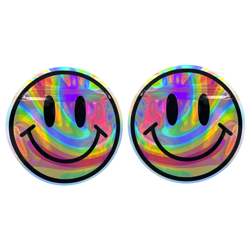 Custom printed 3.5g 7g 14g holographic polyester film bag custom shape die cut ziplock bag