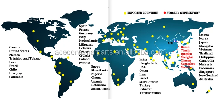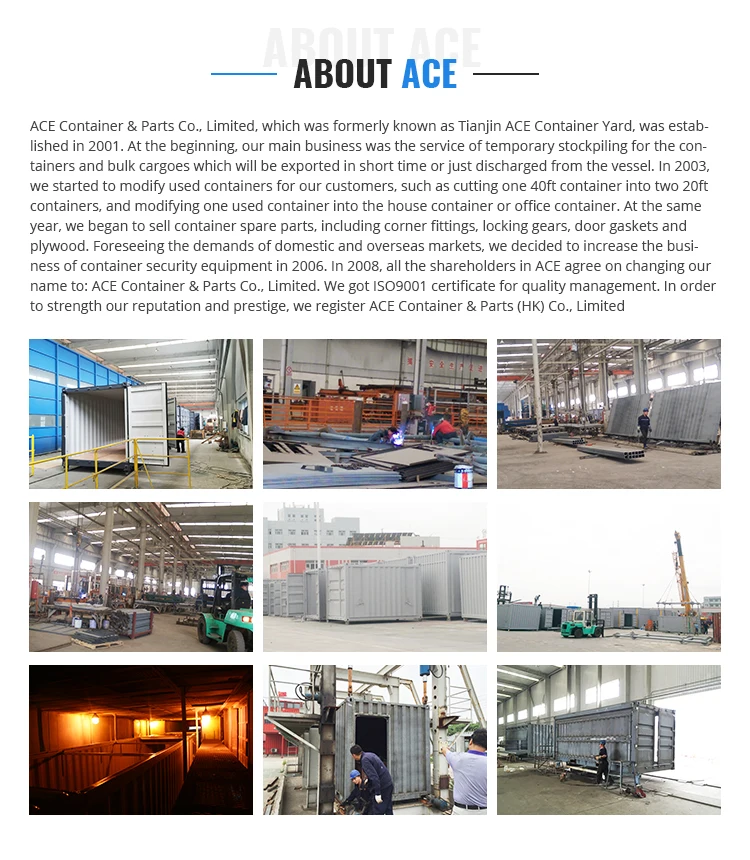 ACE Container is a professional Container & Parts supplier in China, which has over 10 years experience in this line, 7 years Golden Member in Alibaba, Trade Assurance Service in Alibaba. Also ACE Container has exported products to over 80 countries. And we have got the approval of SGS.