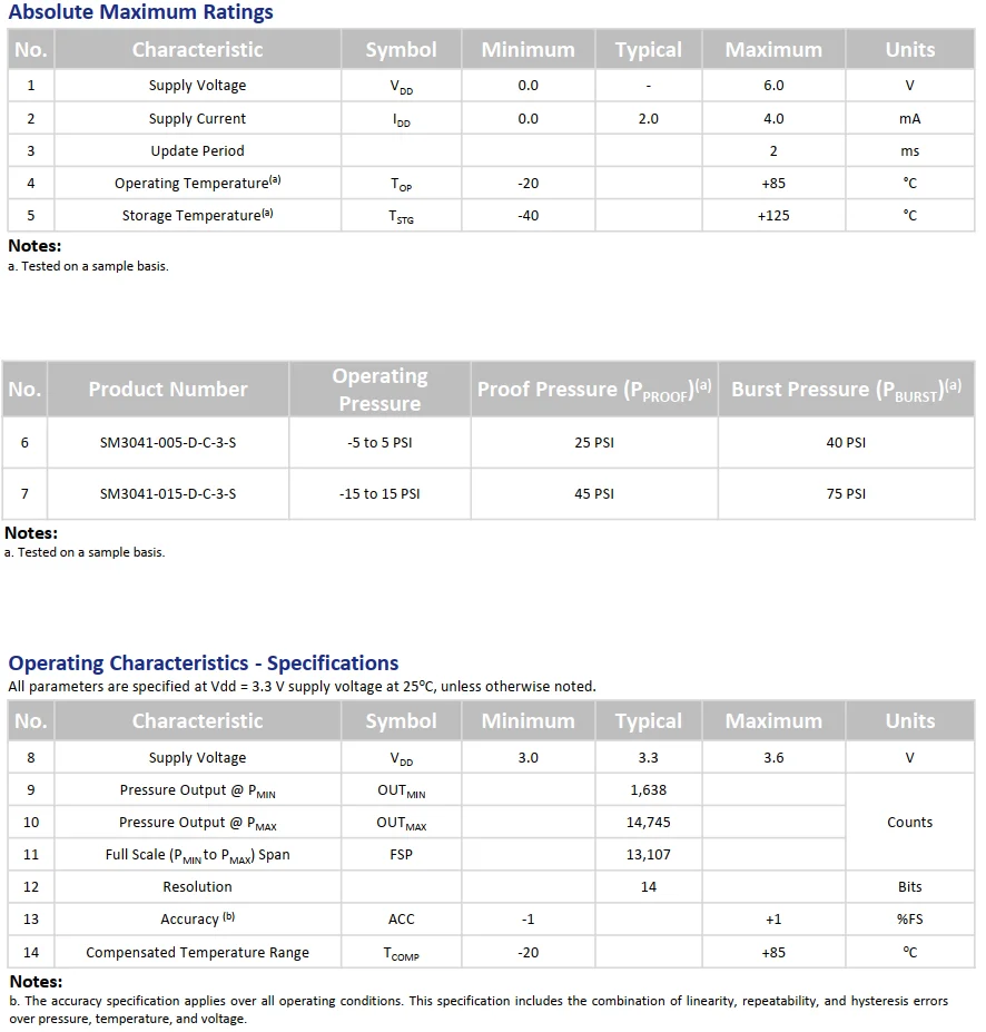 | Series: | SM3041; | Type: | Pressure sensor; |