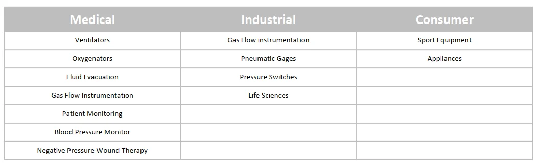 | Applications: | Electrical & Electronics; | Description: | Pressure sensor; |