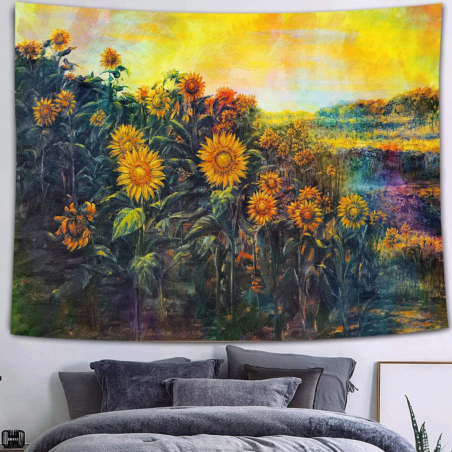 We have 5 sizes to choose and accept customs size: 95*73cm (37.4*28.7inch) / 150*130cm (59.1*51.2inch) / 200*150cm (78.7*59.1inch) / 230*150cm (90.6*59.1 inch) / 230*180cm ( 90.6*70.9inch )All of our tapestries are hand and machine washable. When hanging a bedroom, the image above can show the details of the tapestry size.