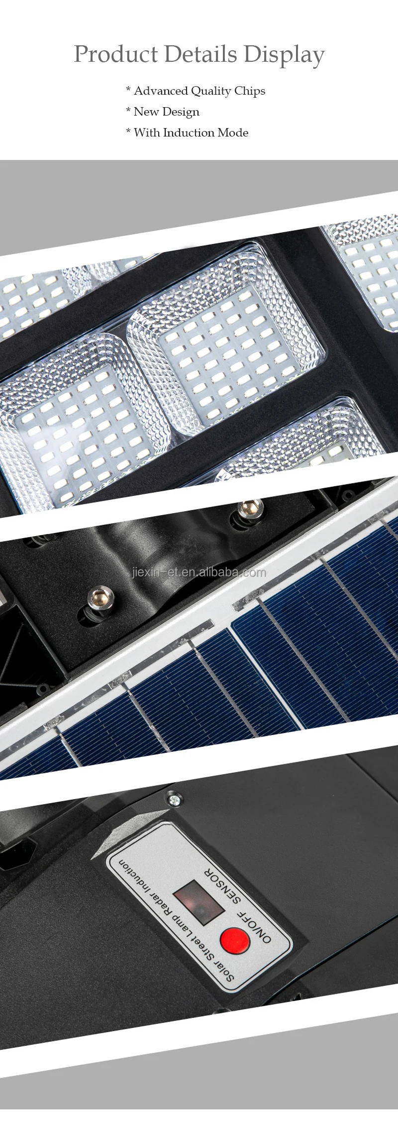 Conventional Parameters: [Charge time]5-7Hours [Material] ABS [Waterproof level]IP65 [Lighting time]3 rainy days [Induction system]Remote control+Light control+Time control [Warranty]2 Years [Install the diameter]45-50mm [Working mode] 1.Steady ON 2.Motion sensor after 2H/4H/6H steady ON 3.Motion sensor | ||||||||