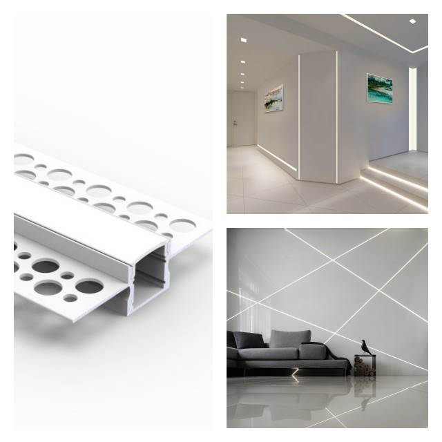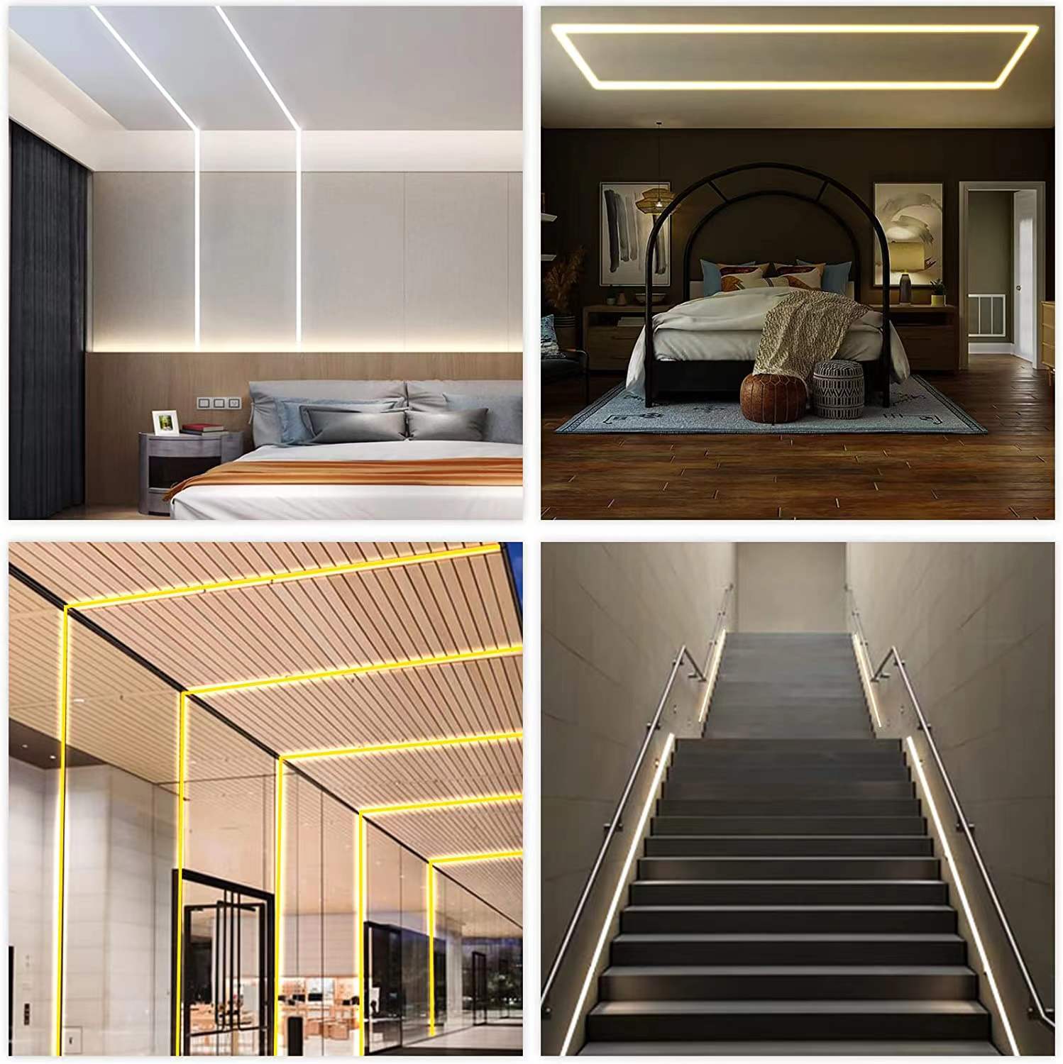 Ceilings - These profiles can be recessed into ceilings to create a flush and seamless look. Walls - Plasterboard LED Aluminum Profiles can be mounted on walls to create unique and attractive accent lighting features. Stairs - Profiles can be installed along stairs, providing security lighting and a modern aesthetic. Cupboards and shelves - LED profiles can be used to illuminate shelves and cupboards, making it easier to find items in the dark.