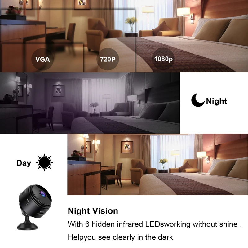 2,Application: You can put hidden cameras in your home, office, warehouse, store, garden corners, even on your pockets or collars, and use strong magnets that can be attached to any iron surface.