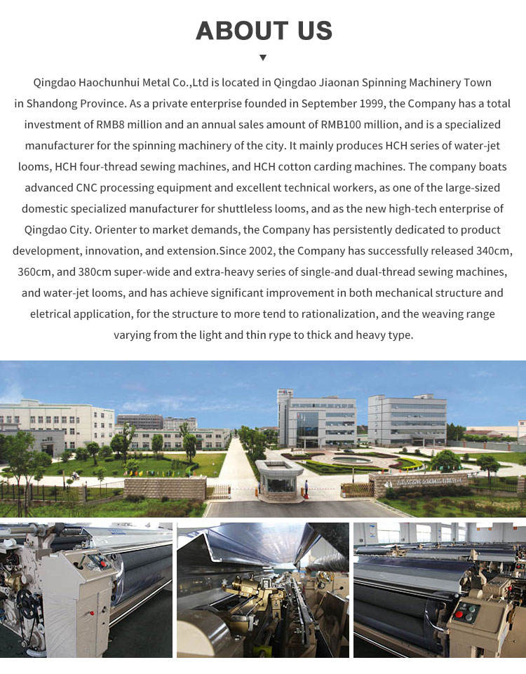 Our company was established in 2008 as a comprehensive manufacturing and trading company. We have been engaged in the field of textile machinery for 12 years, specializing in the production of various textile machinery, such as water jet looms, air jet looms, water jacquard looms, carding machines, plastic knitting machines, etc. We are known for excellent quality, competitive prices, first-class craftsmanship, safe packaging and prompt delivery. Therefore, we can fully meet your needs and have a large customer base. Our products sell well in Taiwan, Korea, Japan, Turkey, Pakistan, India and Bangladesh. In addition to our own products, we also provide OEM services and accept custom orders. We have developed designs for customers in Taiwan and Turkey, and our products are very popular in overseas markets. We will provide better products with diversified designs and professional services. We sincerely welcome friends from all over the world to visit our company and cooperate with us on the basis of long-term mutual benefit. We look forward to receiving your inquiry as soon as possible
