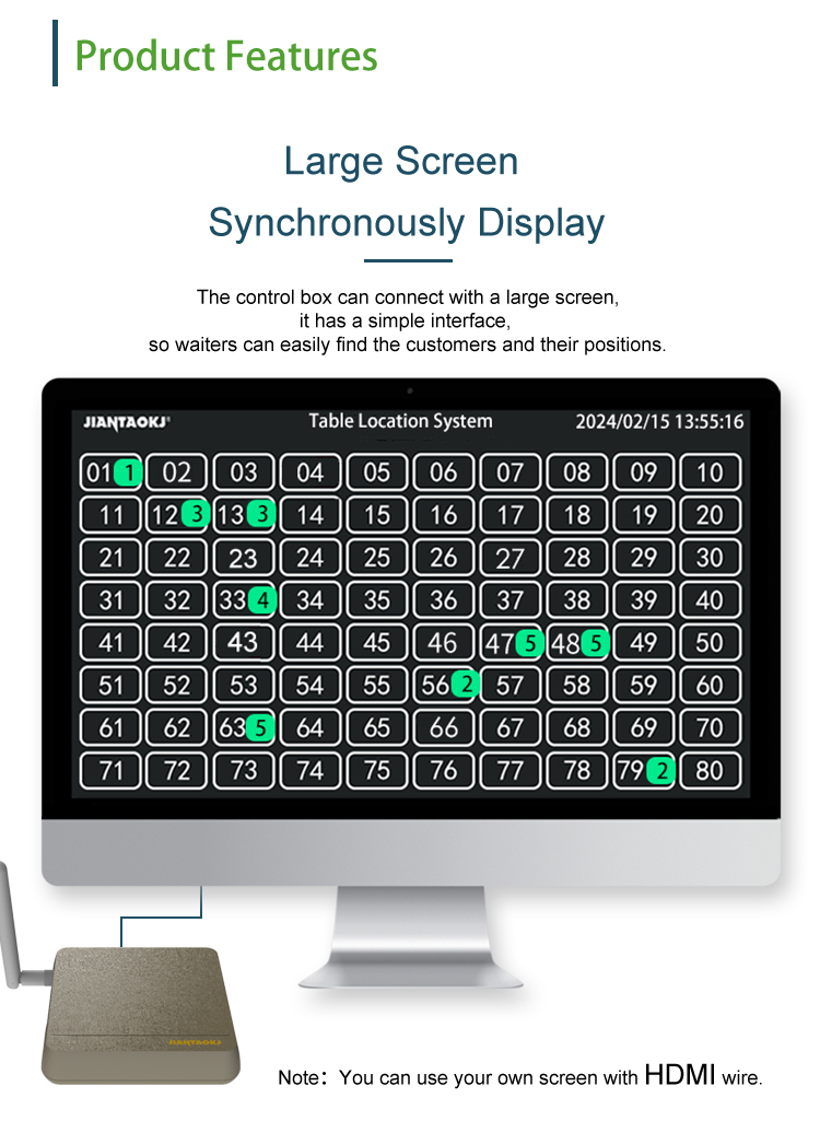 describe: Share a table: the screen will automatically display the location of each customer; Change table: the screen will automatically update the customer's position; Returning Customer Locator: The screen will automatically disappear with the location of that customer. | ||||||||