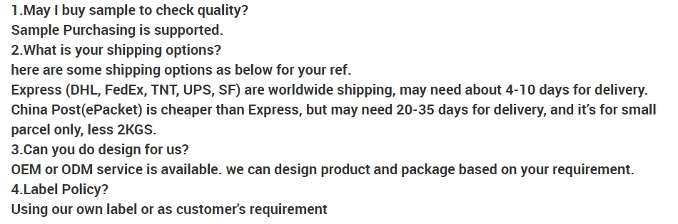 | Place of Origin: | Fujian, China; | Shipping Way: | DHL, UPS, TNT, FedEx, Aramex, By Air, By Sea; |