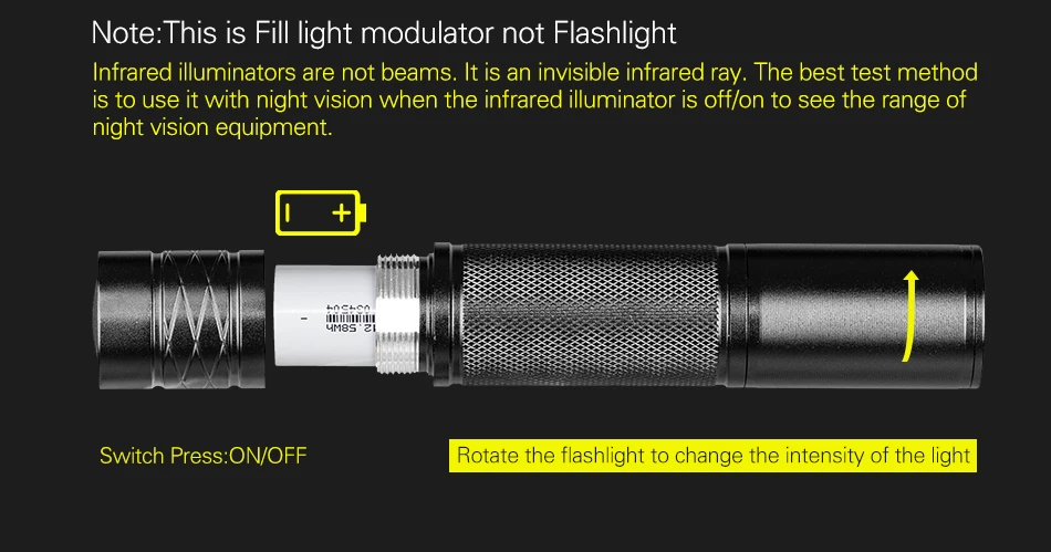 | Operating Voltage: | 18650 Lithium battery; | Night vision distance: | up to 100 m / 200 m; |