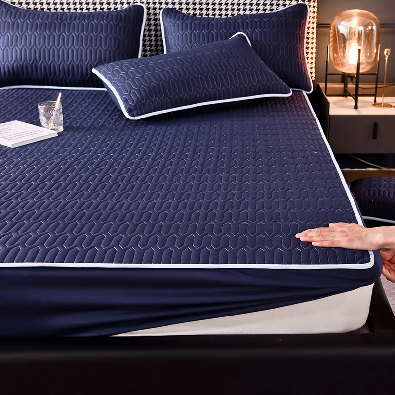 Quilted bed sheet printing polycotton mattress protective cover fixed bedspread set coverlet fitted bed cover