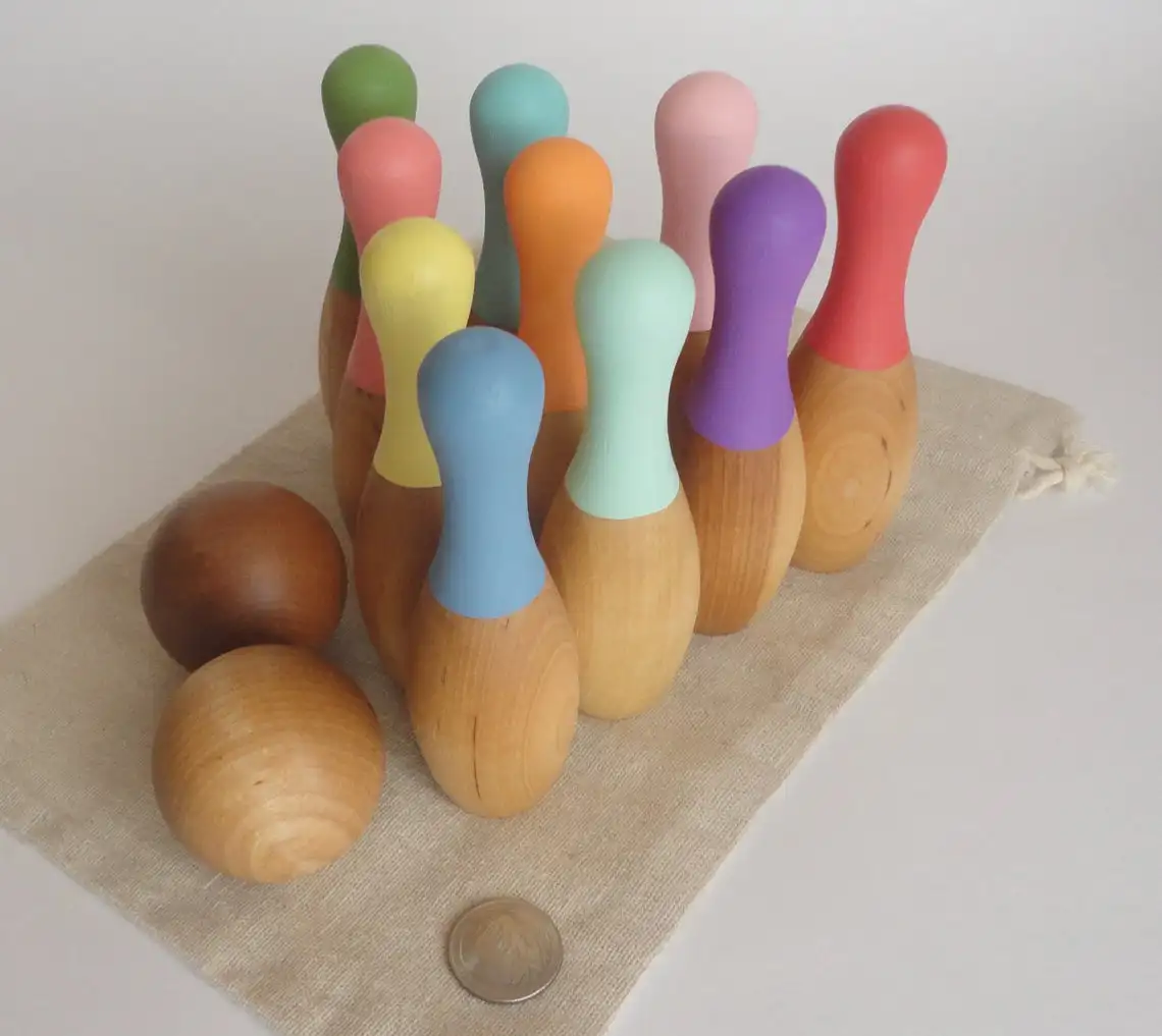 This set of 6 bowling pins and ball are perfect for a baby shower, birthday or even nursery decor. They are perfect for toddler, preschool and school age children.