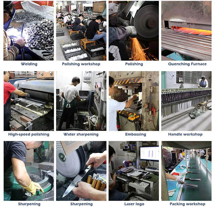 A: We specialize in the production of cost-effective knives, medium and high-end composite steel knives.Such as China 7Cr17Mov stainless steel laser pattern knives, hand-forged knives, Damascus composite steel knives, German steel 1.4116... The handles are made of natural wood such as color wood, G10, Micarta, Pakkawood, rosewood, wenge wood, and olive wood.