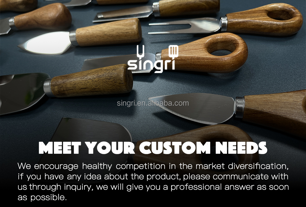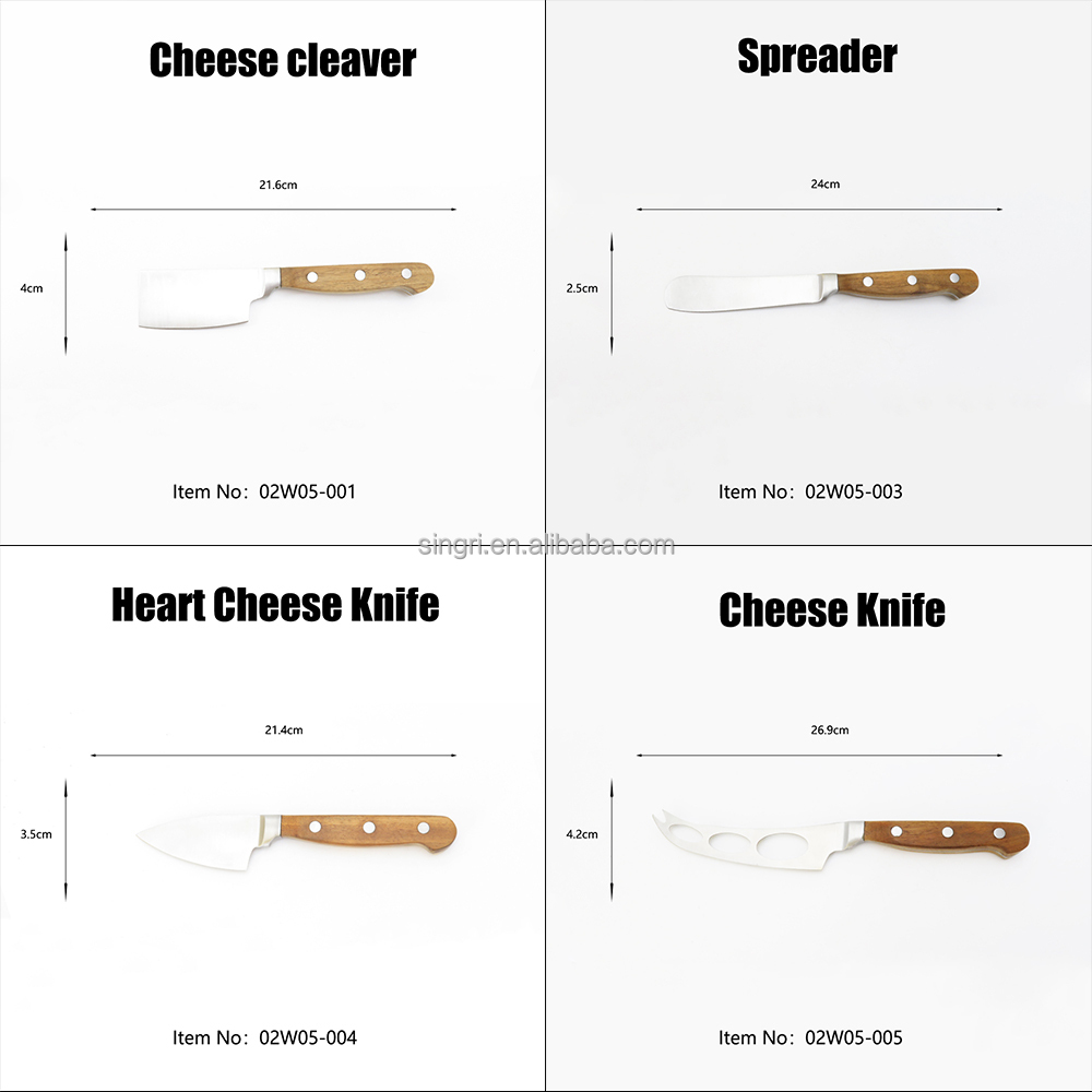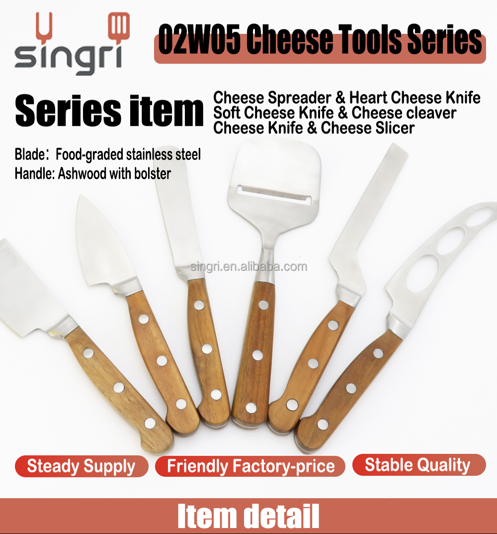 02W05 Food Grade Stainless Steel 6 Piece Cheese Tool with Support Ash Wood Handle
