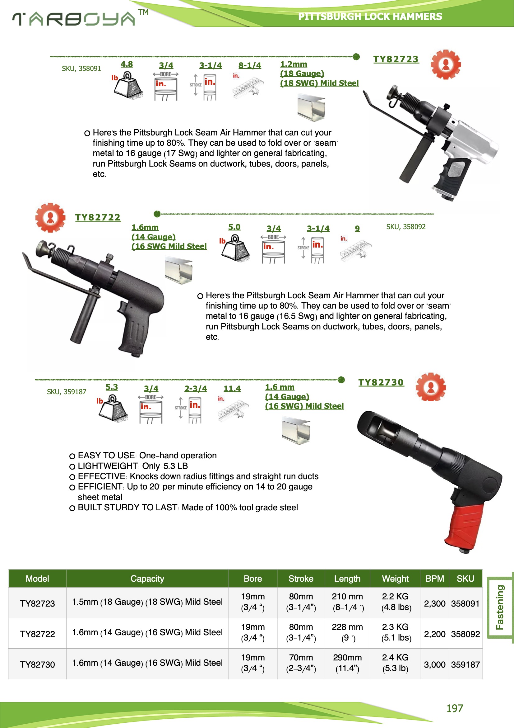 The Tarboya Fastening Tool Manual can be downloaded fromwww.tarboya.com