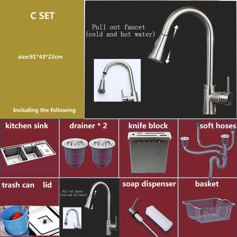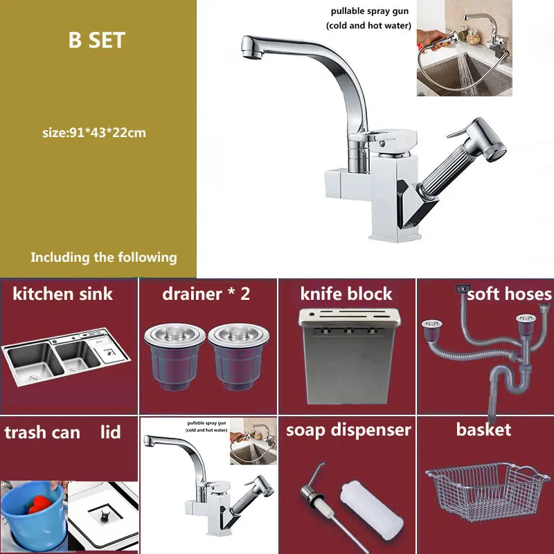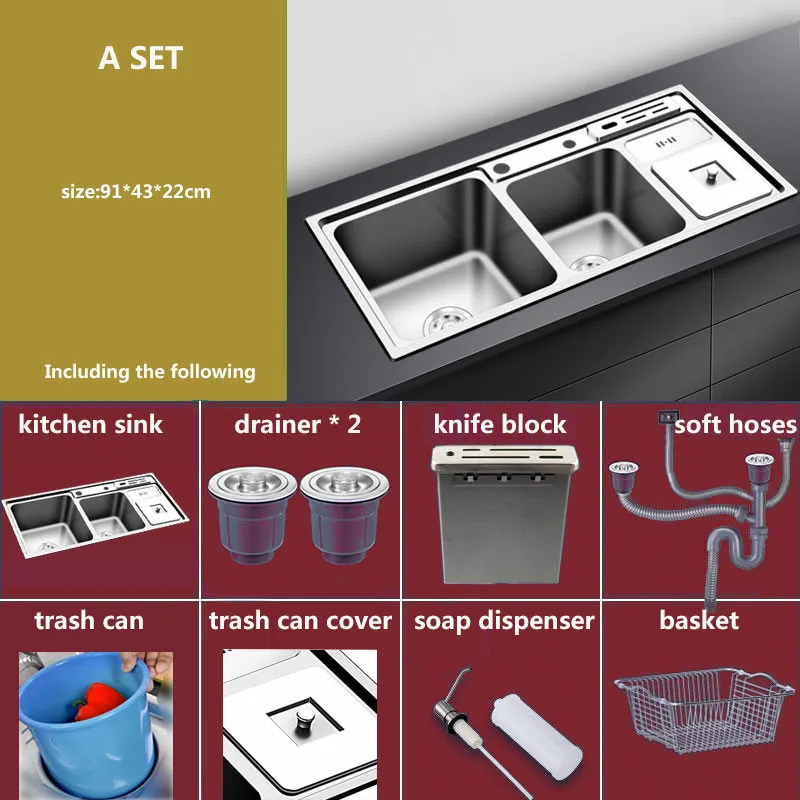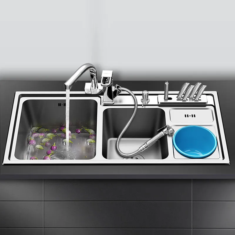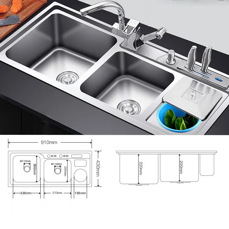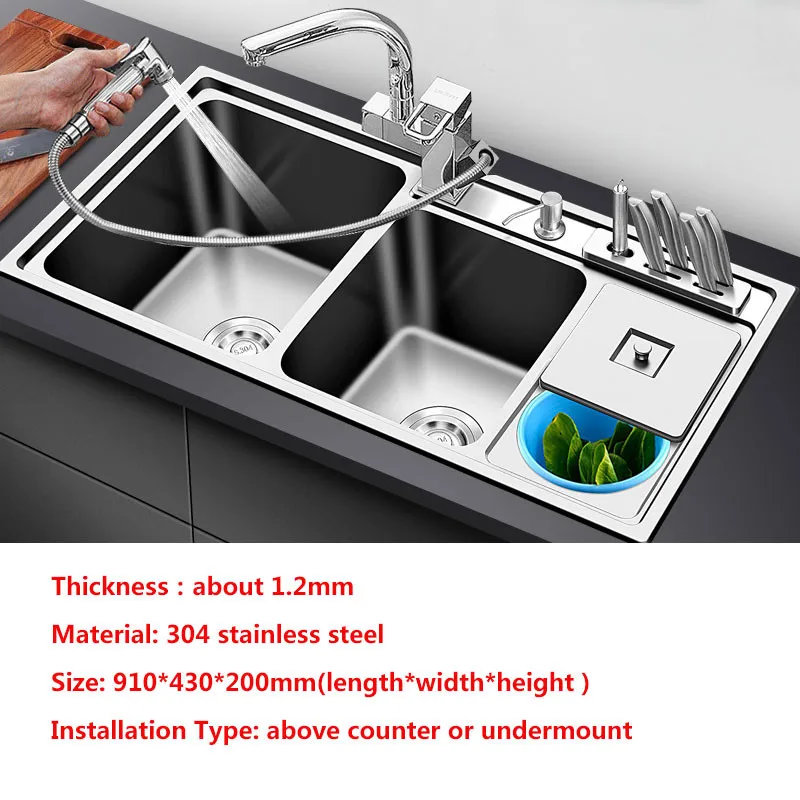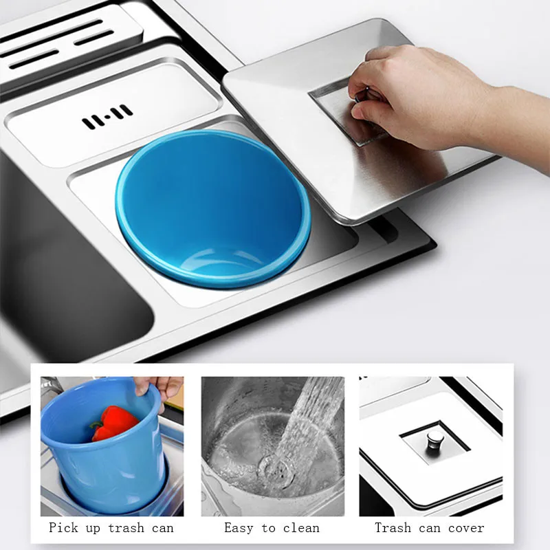 1.2mm Thickness Sinks Kitchen Stainless Steel Sinks with Trash Can with Knife Holder Above Counter EXW