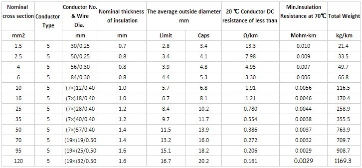 - Rated voltage: 450/750V (0.75mm is 300/500V2& 1.0mm2)