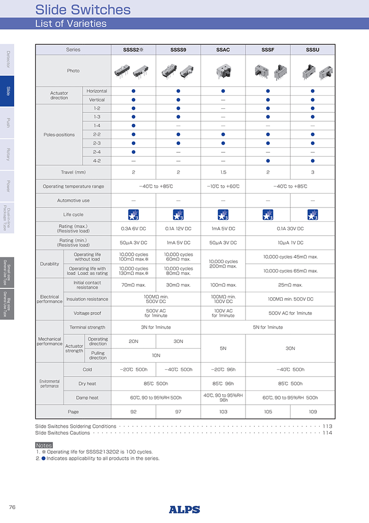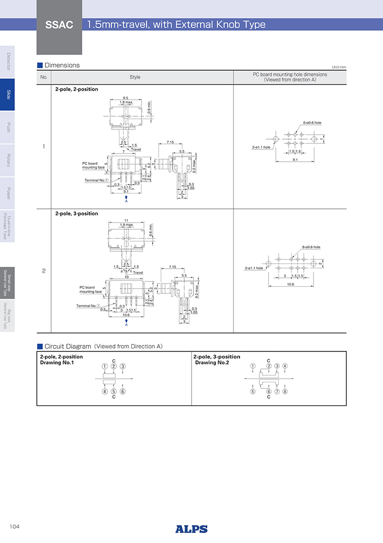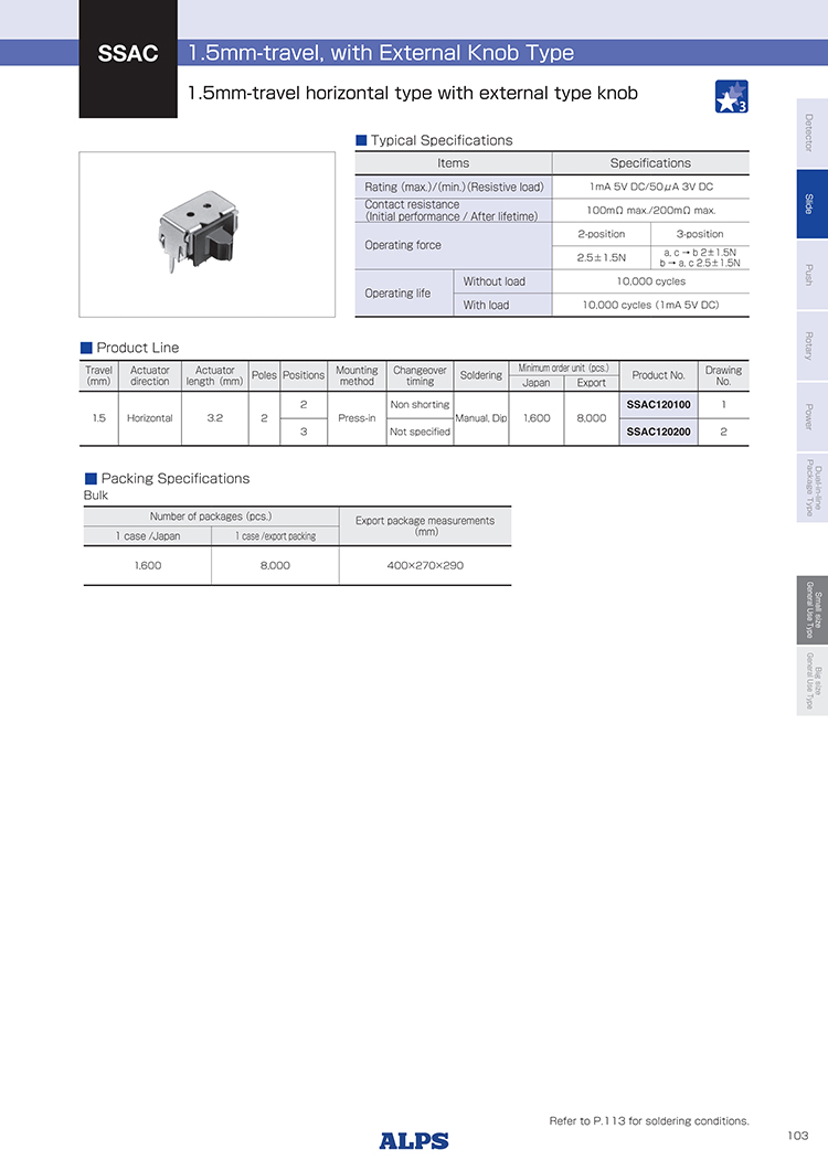 1.5mm stroke external knob type SSAC series ALPS Japanese slide switch Japanese original