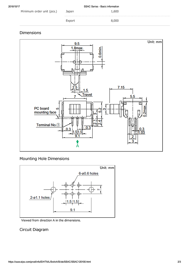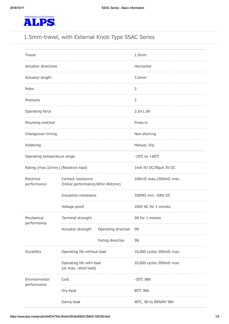 | Mechanical life: | 10,000 cycles | Origin: | Japan |
