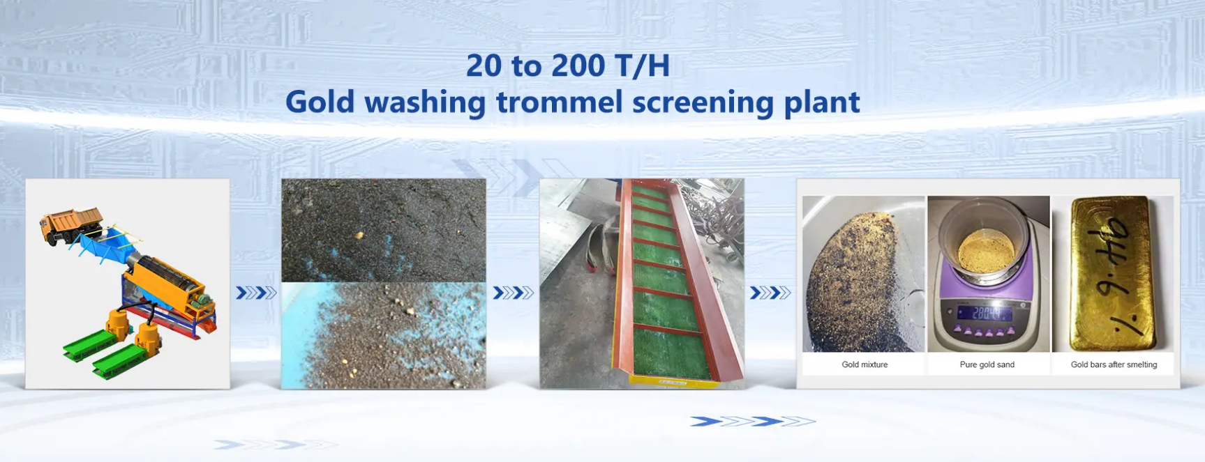 5. Gold mine projects and solutions:Mobile trommel screen, tank leaching, heap leaching, gold ore gravity separation line, CIL/CIP, etc.