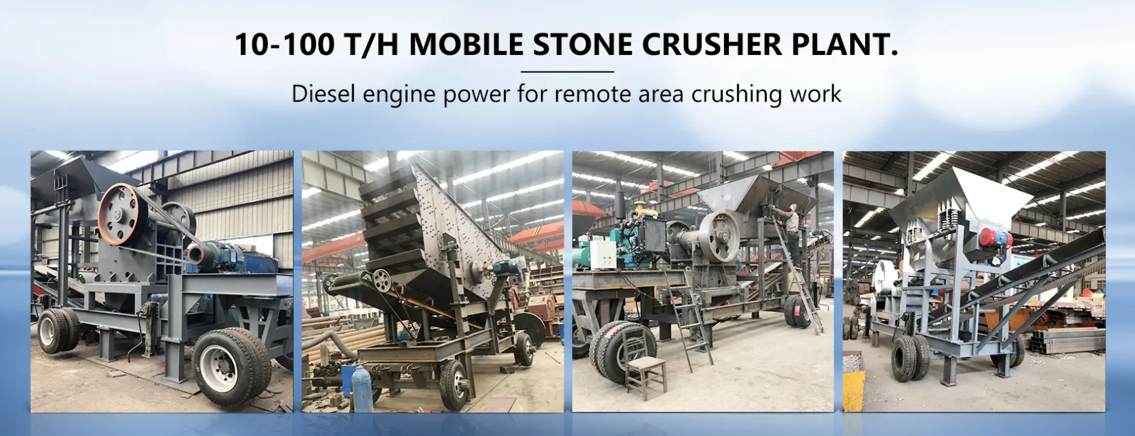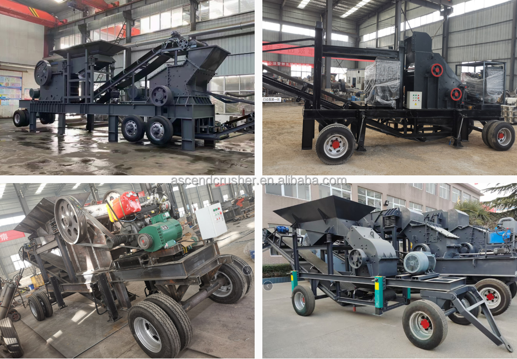 10-100 t/h portable mobile tug type diesel engine stone jaw crusher crushing and screening station factory