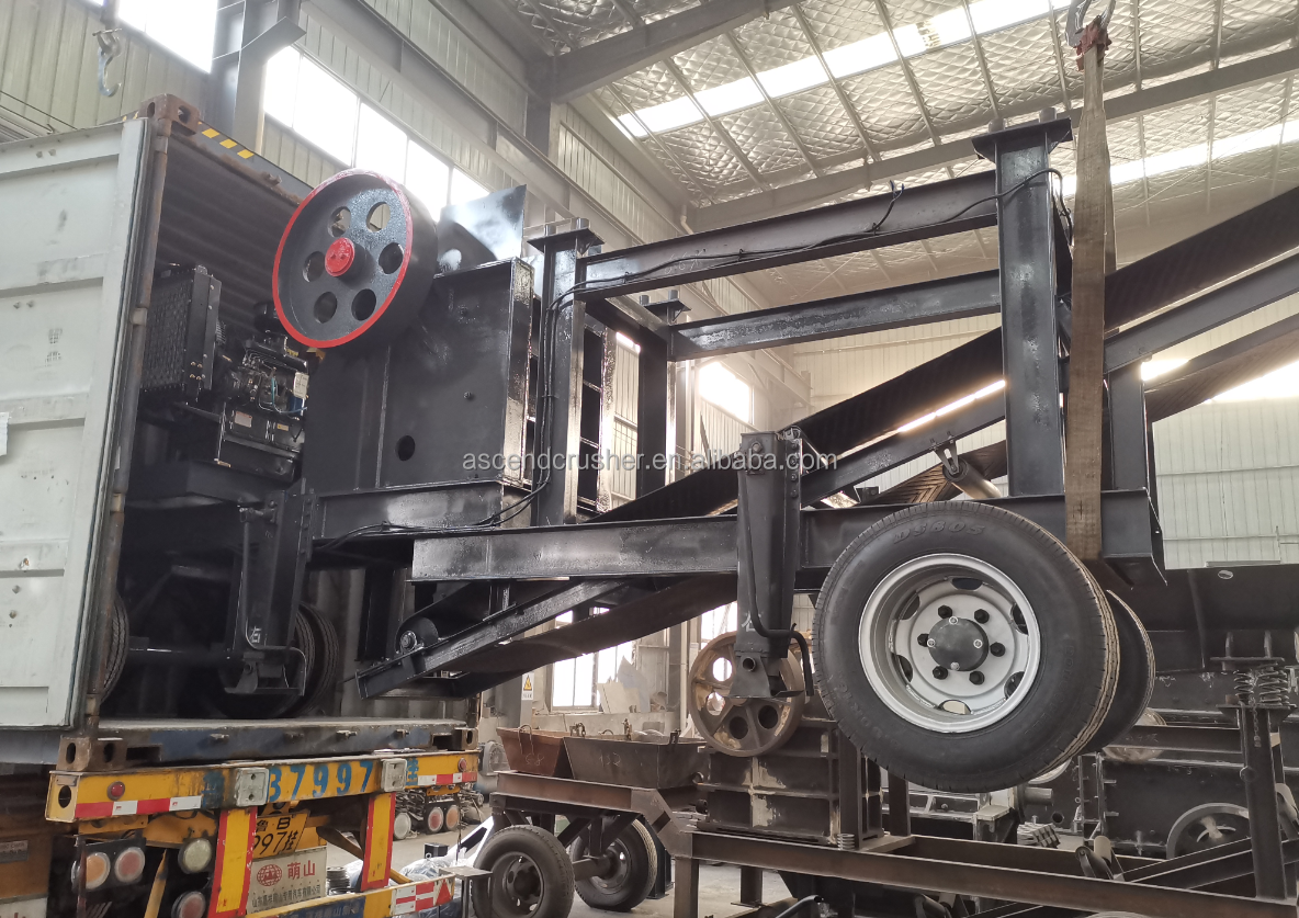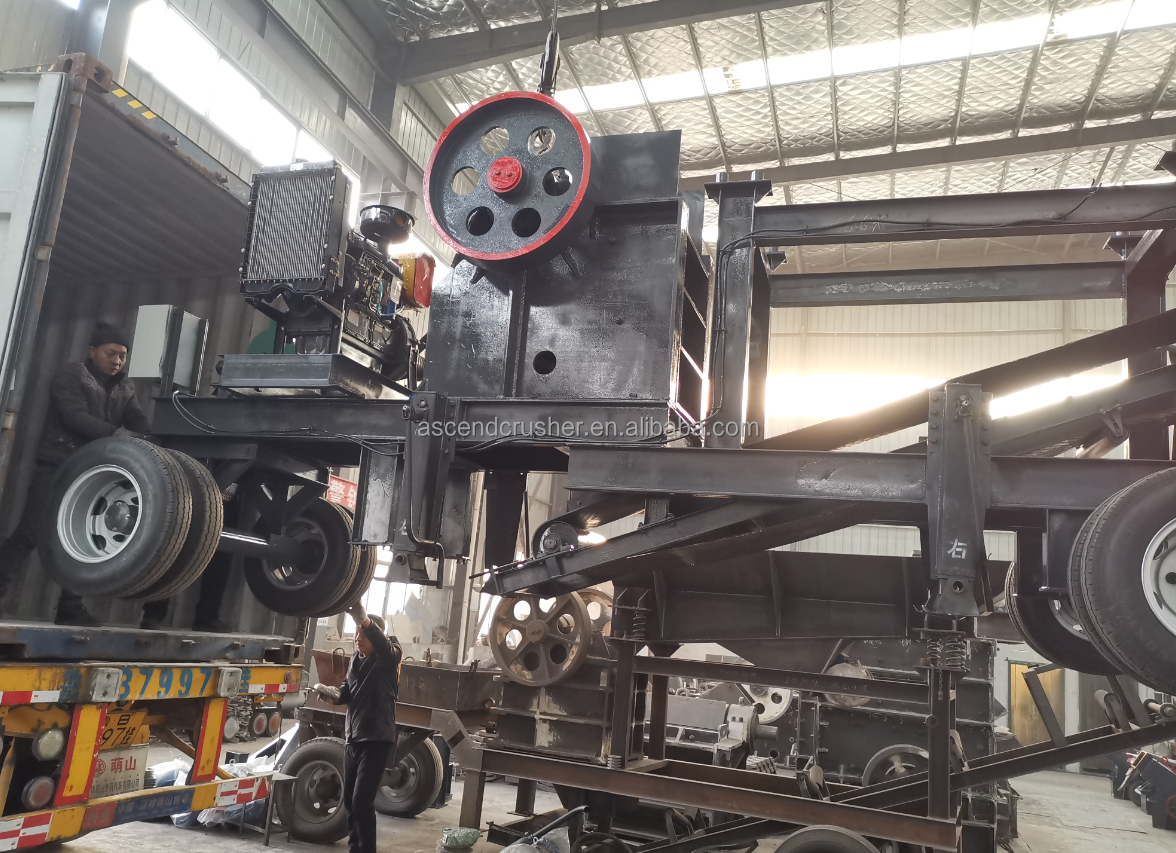 Diesel mobile jaw crusher is widely used to crush various materials, such as stone, granite, trap rock, coke, coal, manganese ore, iron ore, emery, fused aluminum, oxide, fused calcium carbide, limestone, quartzite , alloys, etc. The application of tires makes the machine more convenient to move and adapt to various applications, especially when your place lacks power or needs to move the machine frequently.