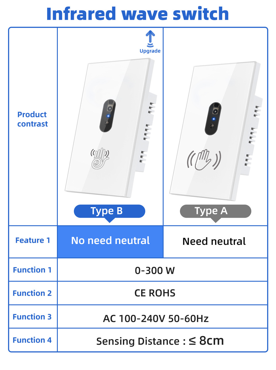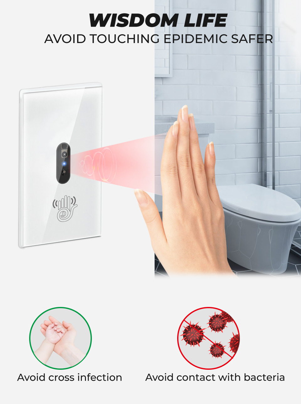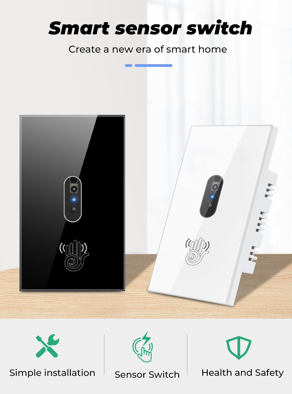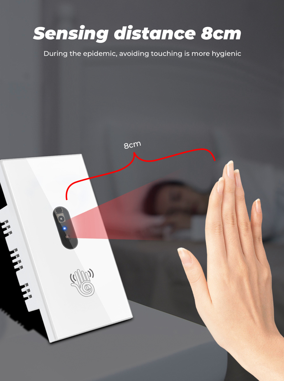 100-240V 10A Smart Wall Light Switch Hand Swipe Sensor Glass Screen Panel Touchless US IR Infrared Light Sensor Switch