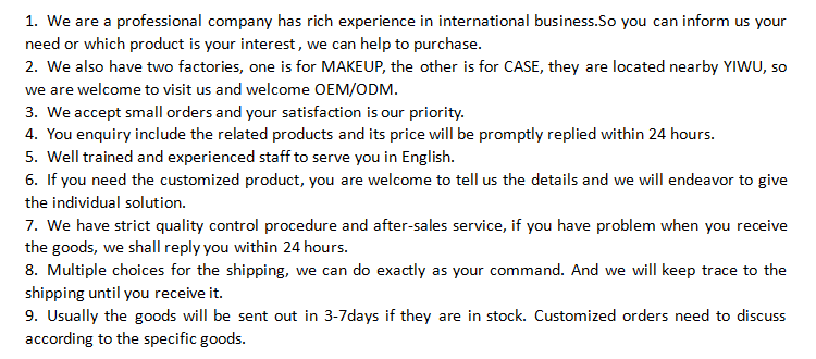 If you have interested beauty-related products or small commodity,pls free no hesitate to contact us ,we will be your trustful partner. |