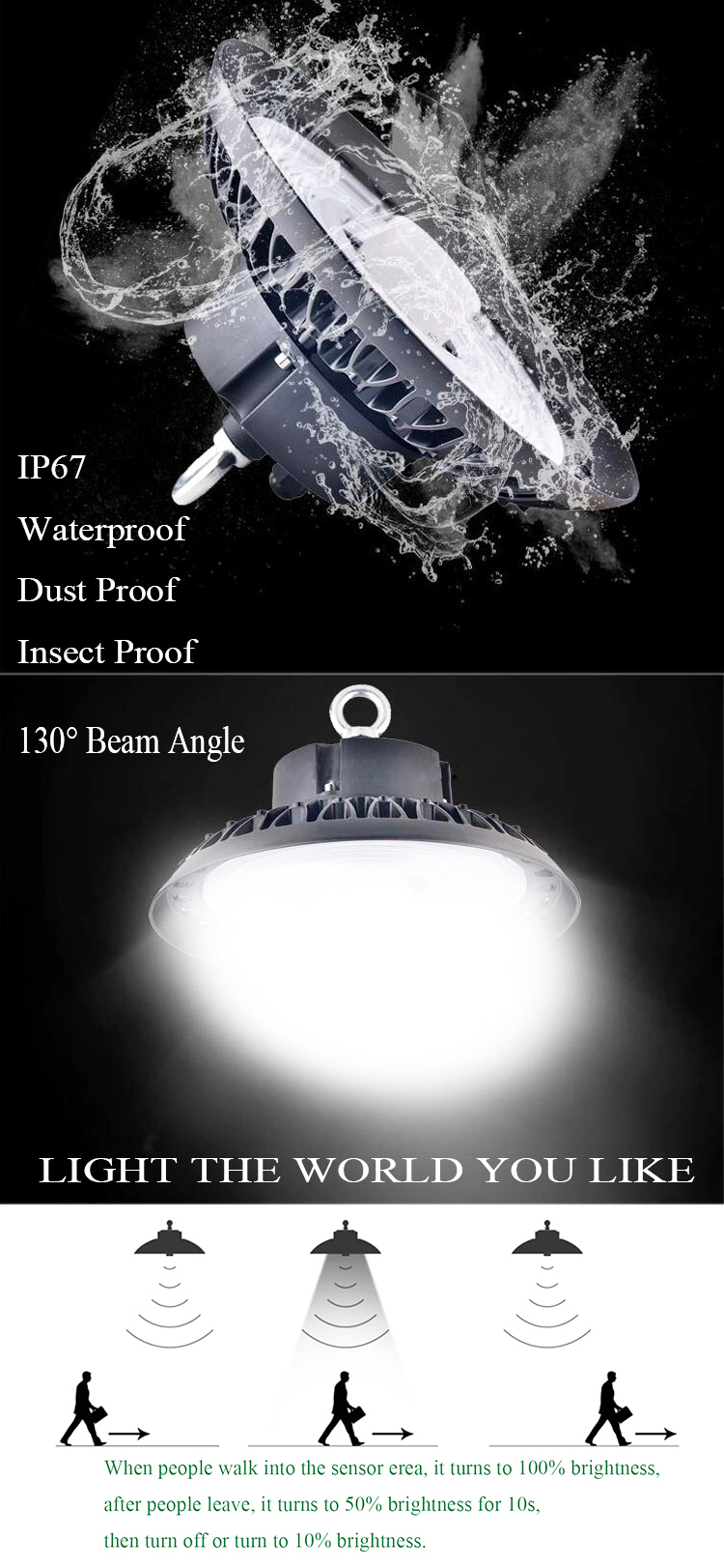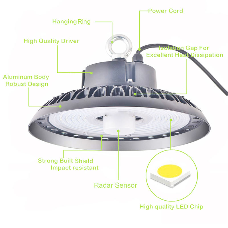 100w 150w 200w Commercial Dimmable Ufo Led High Bay Light with Microwave Motion Sensors