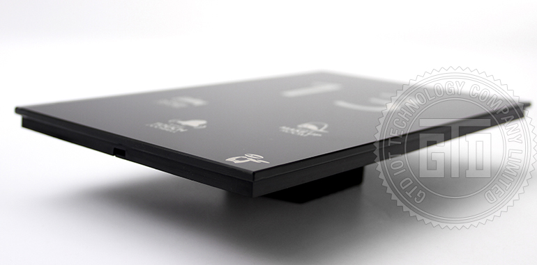 | Material: | 4mm thick tempered glass | Panel text and symbols: | Design and custom printing as required |