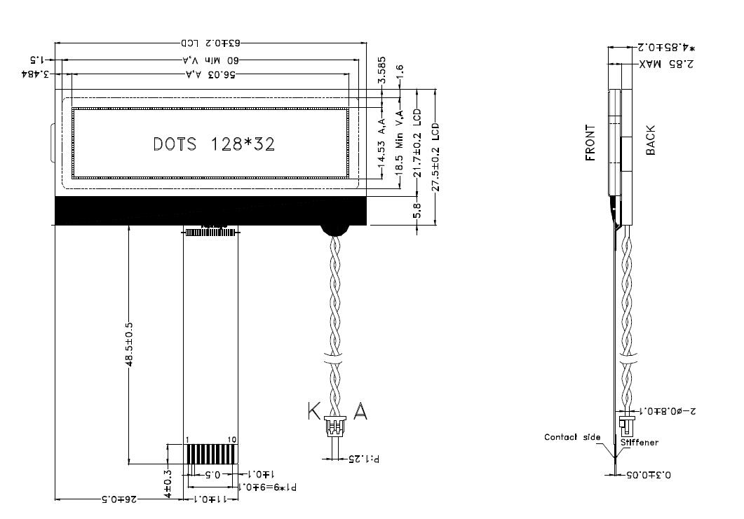 | Item name | 128x32 STN FSTN transflective front COG gray blue LCD module with ST7567 parallel and series SPI interface |