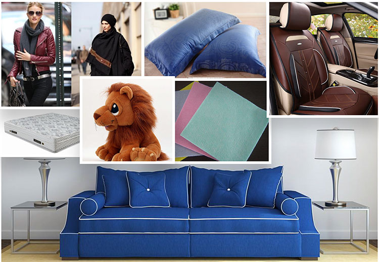 | application | 1. Duck down - similar to stuffed clothing. (20/25/32) 2. Spinning quilt. (51/64) 3. Needle punched non-woven fabric (51/64) |