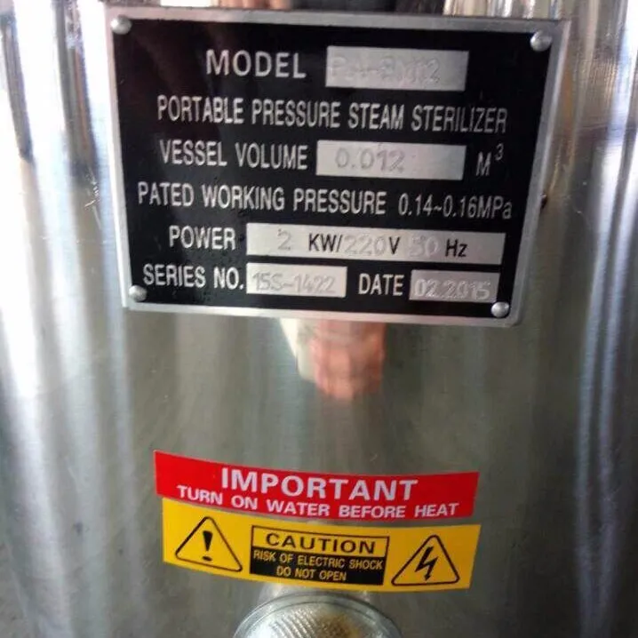 | Work pressure: | 0.14-0.16MPa | Portable Autoclave Volume: | 12 liters |
