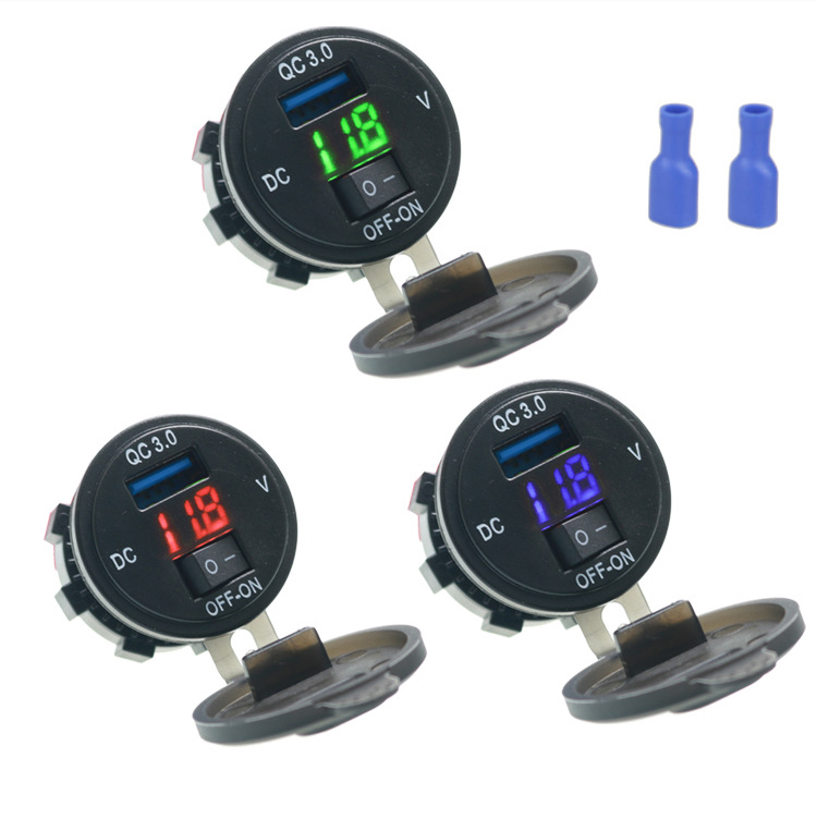 12V 24V DC QC3.0 USB Socket Digital Voltmeter with Power On Off Switch