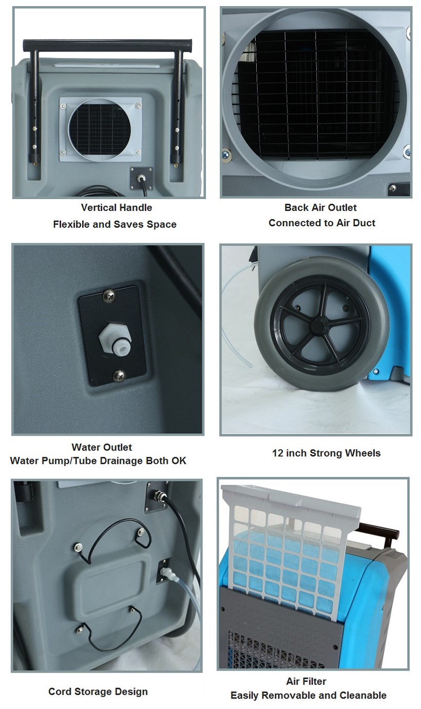 | Supply capacity: | 1000 industrial dehumidifiers for restoration per month | Air circulation: | 410 cubic feet / 697 cubic meters per hour |