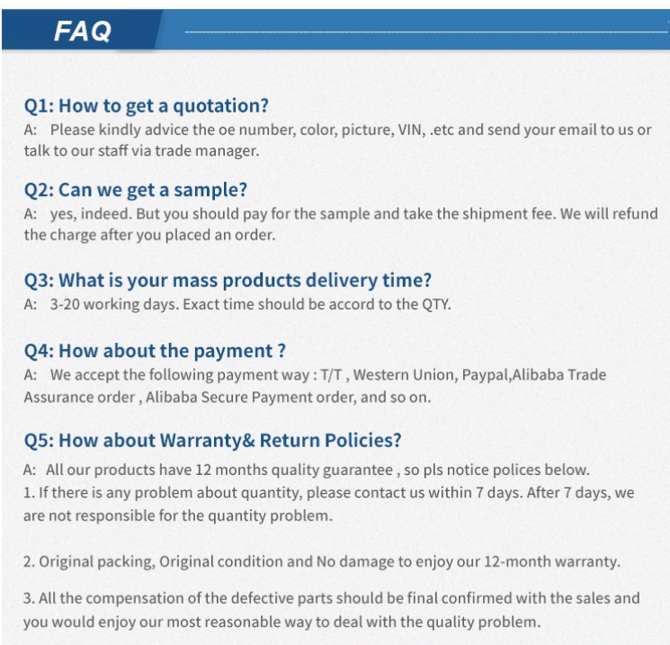 | Warranty: | 12 months | Auto Parts: | Peugeot |