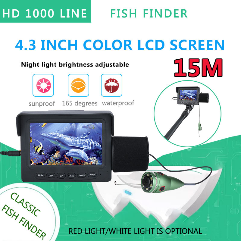 15M 1200TVL Fish Finder Underwater Fishing Camera 4.3 Inch Monitor 6PCS 6W Infrared LED Fishing Night Vision Camera