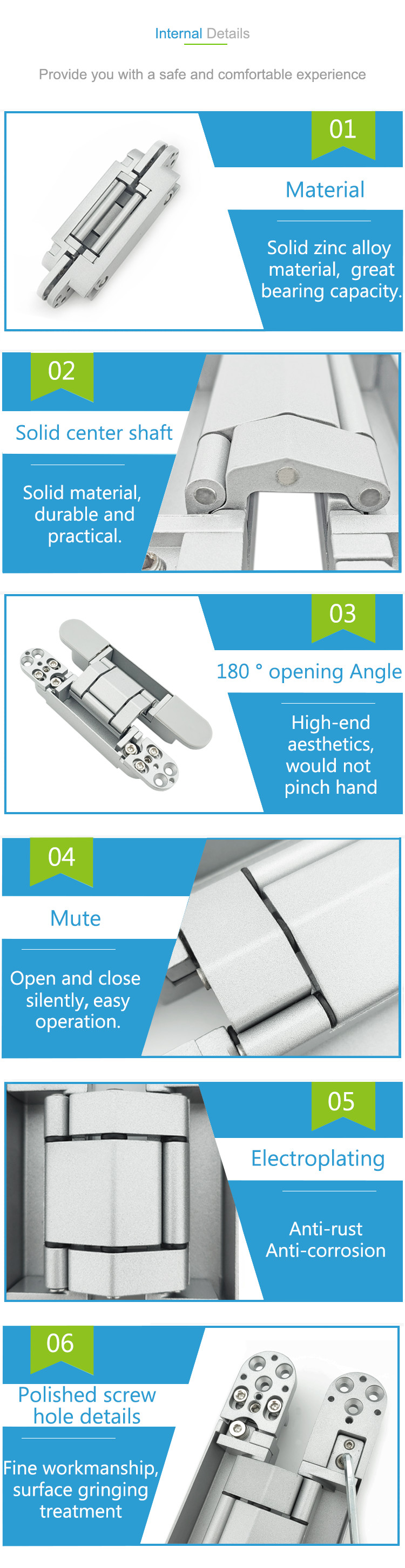 180-degree opening 3D three-way adjustable hidden invisible hinge