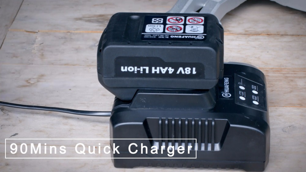Fast charger, 4Ah battery fully charges in 90 minutes