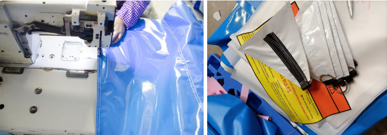 We use commercial grade Plato PVC tarpaulin material, which is environmentally friendly, waterproof, flame retardant, and lead-free.