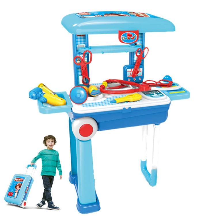 2 IN 1 kids plastic trolley pretend game play toy set toy for children educational pull rod medical suitcase box doctor toys